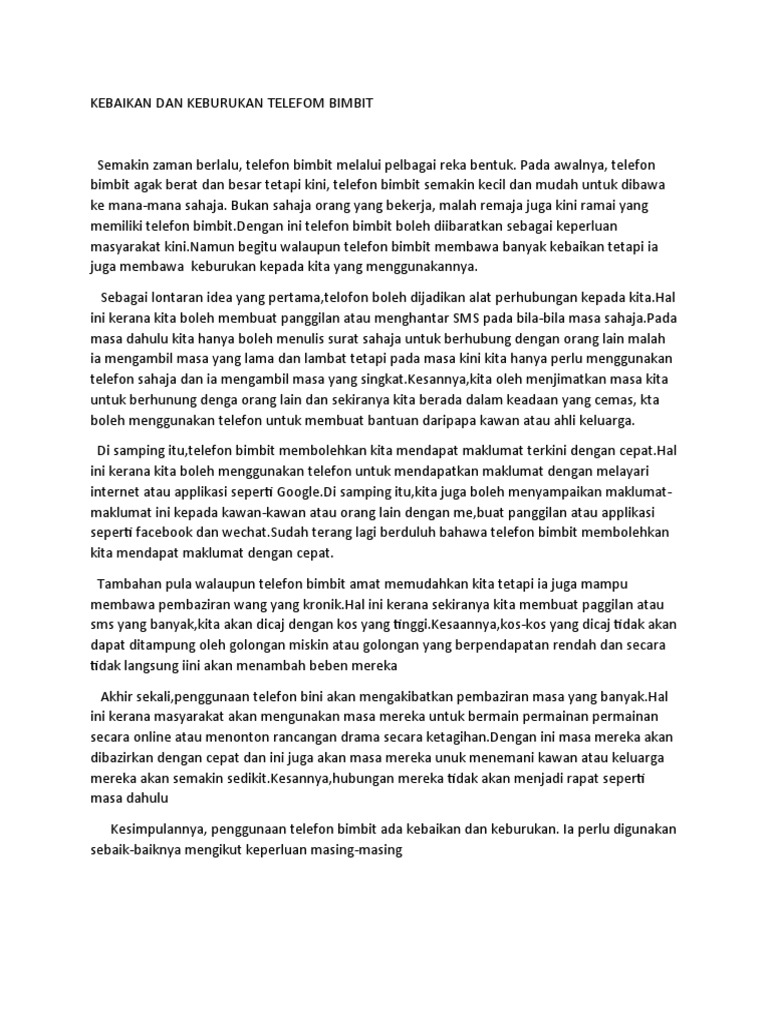 Karangan Kebaikan Dan Keburukan Telefon Essays High School English Docsity